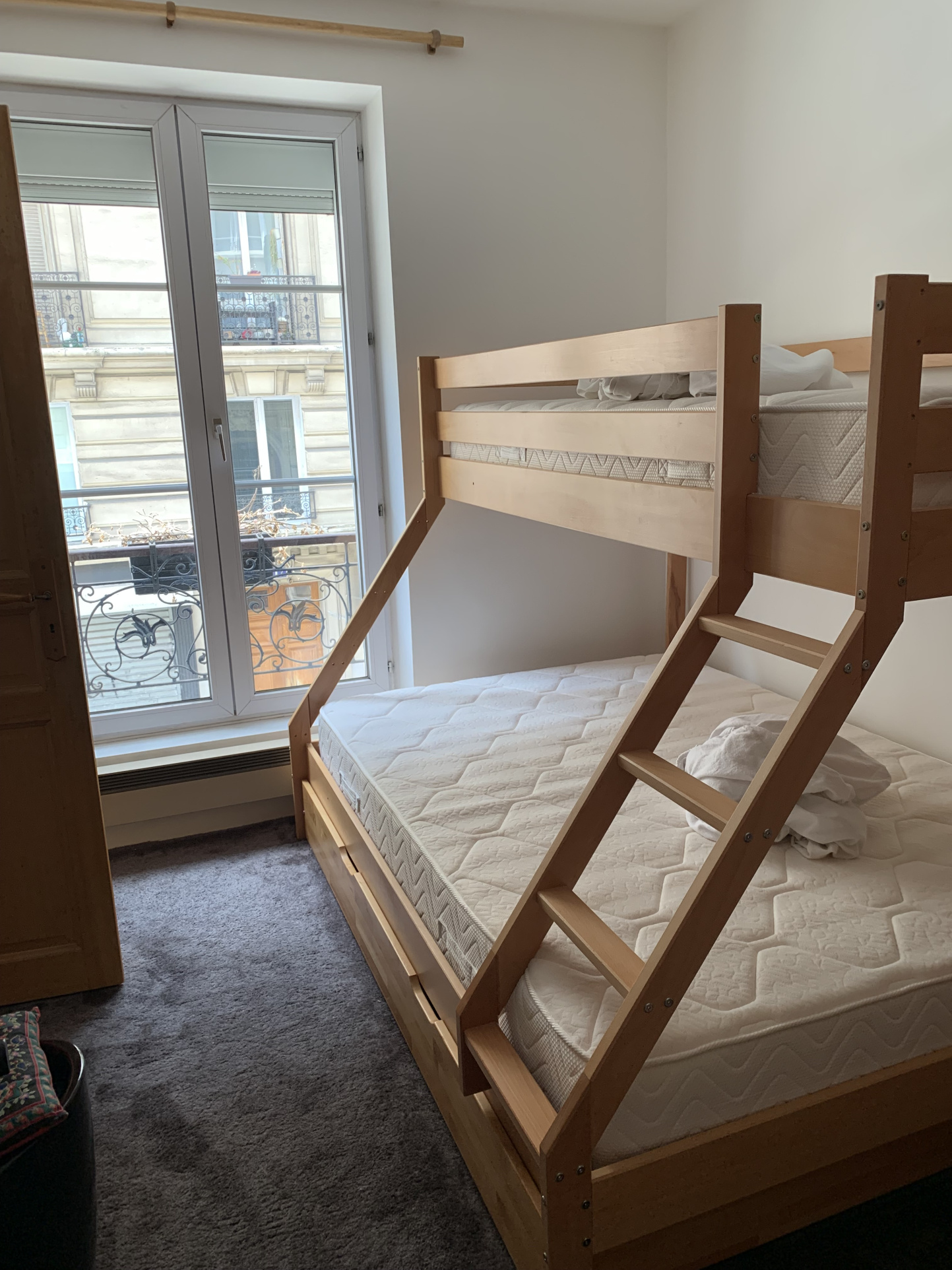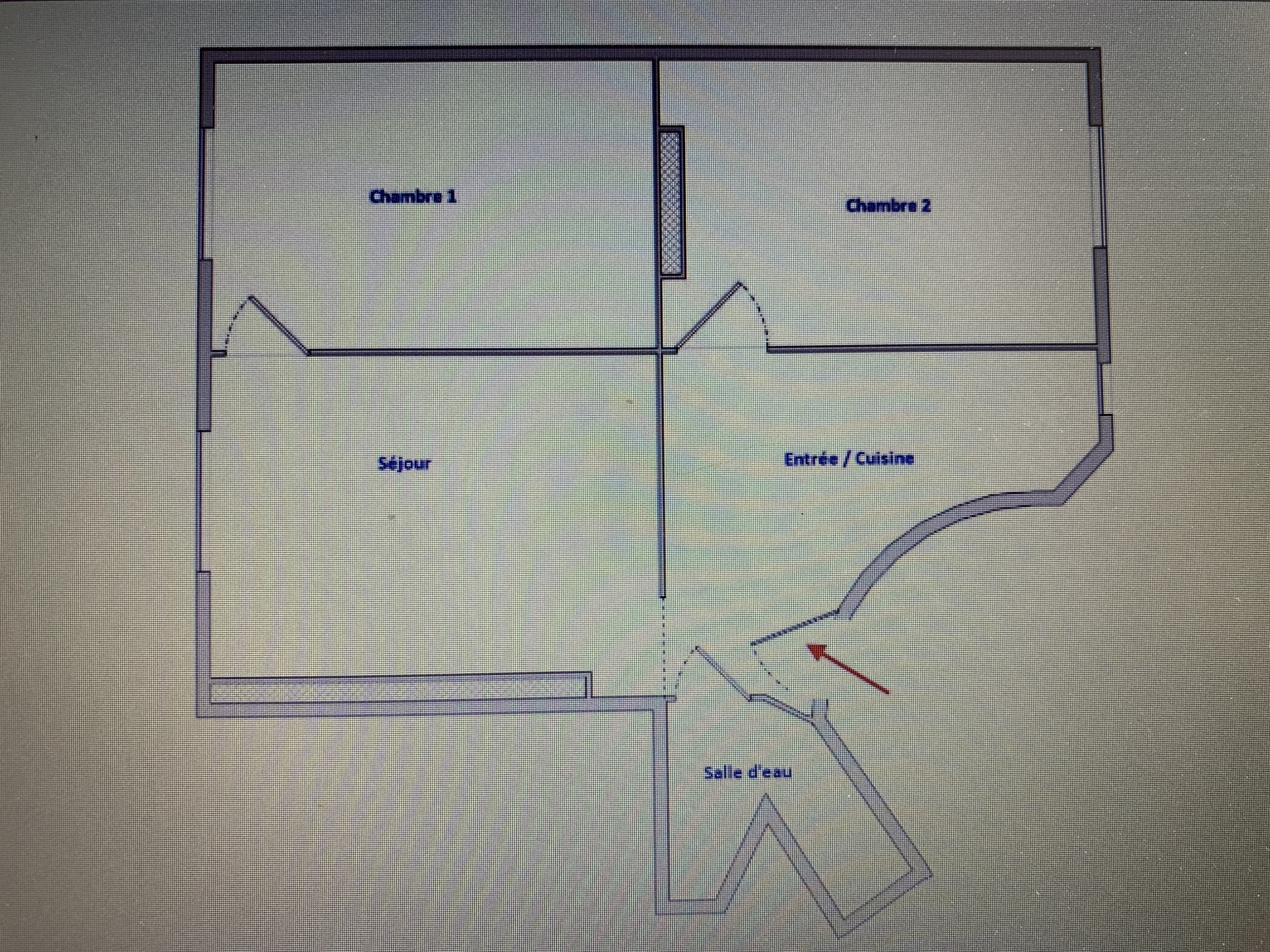 Au 1er étage d'un bel immeuble de la Rue Hemel, 3 pièces traversant de 49,07m2 comprenant une entrée avec cuisine ouverte, un sejour sur rue, une chambre sur rue, une chambre sur cour et une salle d'eau avec wc